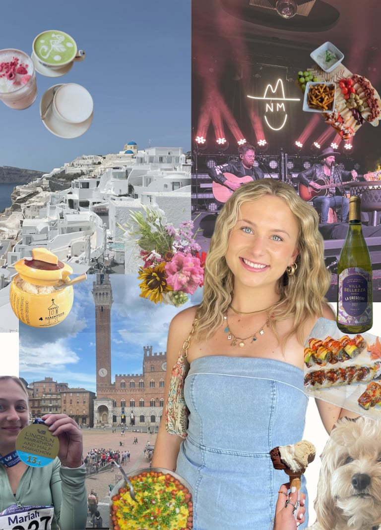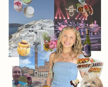 The snapshots beside this section highlight pieces of who I am - my travels, my creative world, and the experiences that inspire me. They reflect the style and perspective I bring to my work: bold, intentional, and always evolving.