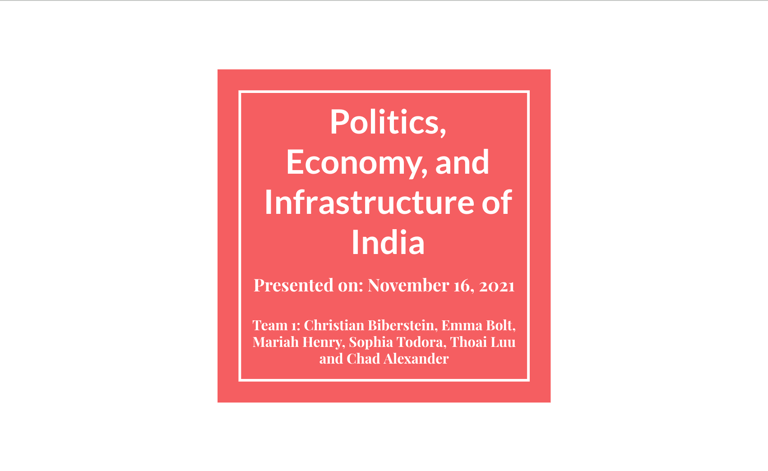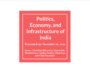 Developed a comprehensive presentation and essay on India, covering its economy, culture, demographics, and political landscape to provide a thorough understanding of the country’s current conditions and global significance.